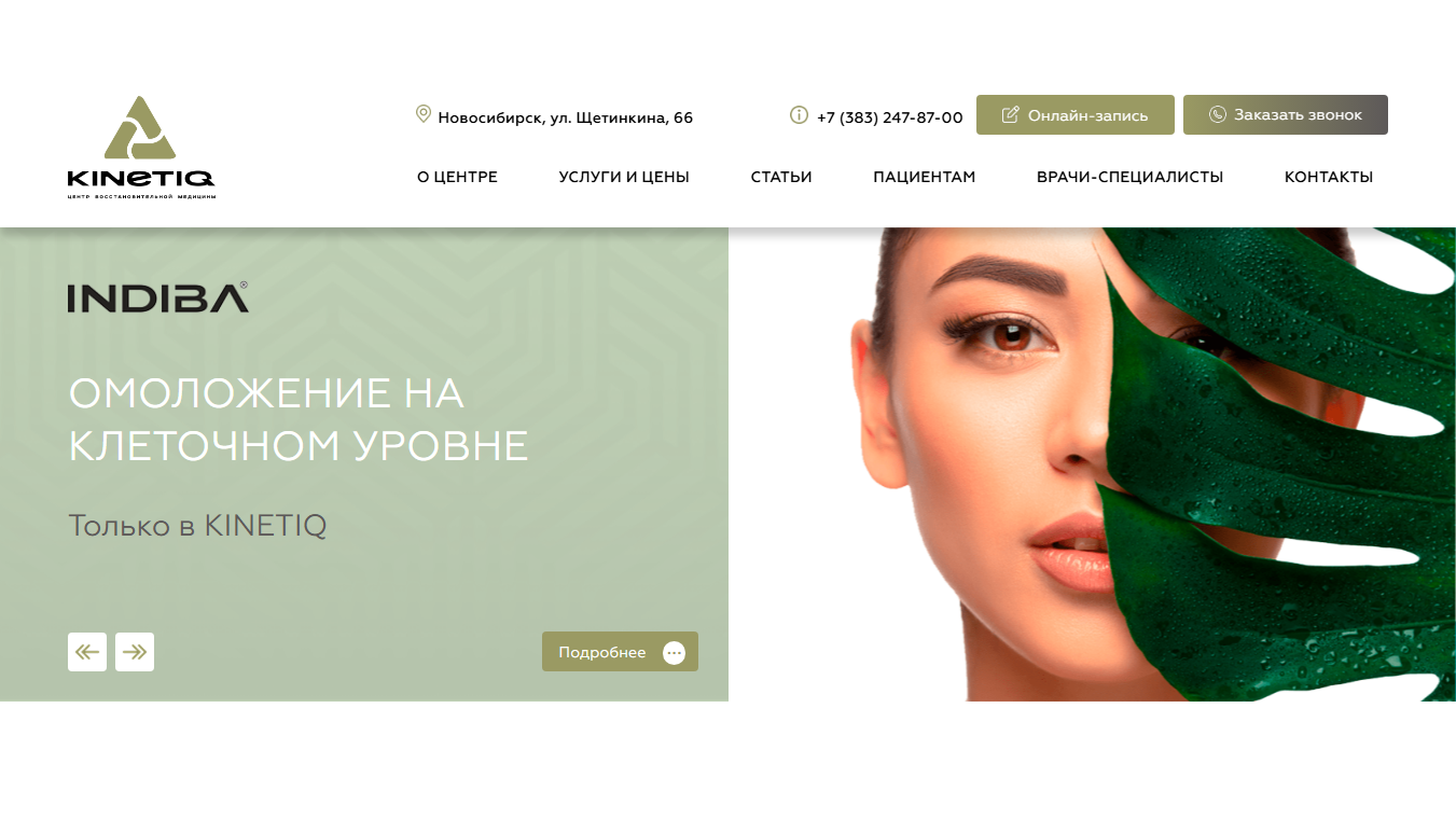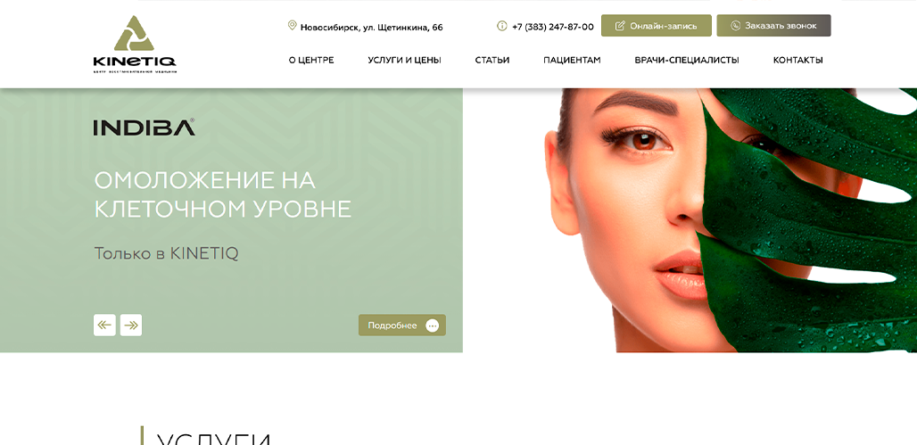 - Главный слайдер с крупными эмоциональными фотографиями и акцентами на уникальные методики центра